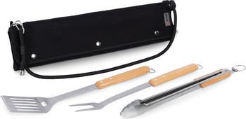 Whether you're grilling in your backyard or heading to a picnic, the BBQ Roll Up 3 Piece Set has you covered. This essential grilling kit includes a spatula, fork, and tongs, all crafted from strong, rust-resistant stainless steel to ensure durability and easy cleaning. The set comes neatly organized in a durable canvas tote, complete with an adjustable strap for comfortable carrying and secure closures that keep everything tightly rolled up and protected when you're on the go. Grill with confidence and convenience wherever your culinary adventures take you!