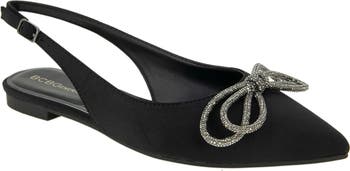 Glistening rhinestones detail the slender bow ties of this svelte mule showcasing a pointy toe and cushioned footbed for added comfort.