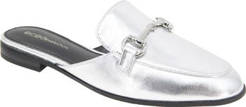 Simple bit hardware shines at the vamp of an easy-on mule with a memory foam footbed and flexible outsole for uncompromising comfort.