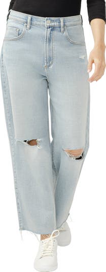 Stay relaxed in these cropped wide-leg jeans, punctuated with ripped knees and raw hems for the ultimate lived-in look.