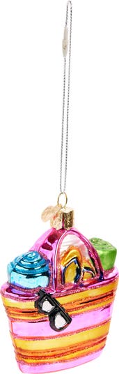 Keep your beachy vibe strong even through the winter with this vibrant hand-painted ornament crafted from fine mouth-blown glass and sanded with festive glitter.