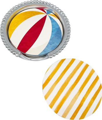 Bring laid-back summertime vibes to every sip you serve with this playful coaster set featuring beach ball motifs.