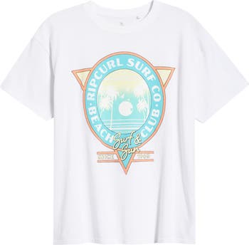 A pigment-dyed finish and beach-club graphic give this cotton tee its laid-back '80s-inspired attitude. Cut in a relaxed fit with short sleeves, it's an easy staple with a sun-faded, vintage feel.