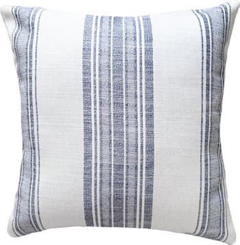Introducing the Beach Club White Stripe Indoor Outdoor Pillow, a soft and durable Acrylic fabric made with a unique technology that withstands tough weather conditions for many years to come. The Anaya Pure Air Collection features Indoor and Outdoor Pillows which are cut and sewn in our Miami, FL facility. Pure. Air Technology: Very soft Acrylic fabric suitable for Indoor or Outdoor use, UV-resistant, Quick-dry, 5-year Warranty. Color: White. Pattern: White Ground with Indigo Blue and Grey Stripes. Size: 14"x20", 20"x20", 24"x24"Fabric: Soft 100% Solution Dyed Acrylic. Insert: 100% Polyester. Wash Instructions: Spot Clean or Machine Wash on Delicate using Cold Water only, Hang to Dry. Closure: Zipper on bottom edge. Made in the USA.
