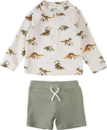 Keep your little one cool, comfortable and protected from the blazing sun in this set featuring a printed rashguard paired with coordinating swim shorts. Made for movement with stretchy, quick-drying fabric, this two-piece set features built-in UPF 50+ sun protection to keep your tiny tot playing in the sand a little while longer.