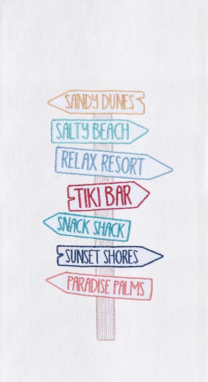 Beach Direction Sign Kitchen and Bathroom Embroidered Hand Towel