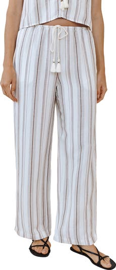 Level up your laid-back look in sweetly striped pants closed with a tassel-tipped drawstring and cut from a breezy linen blend.