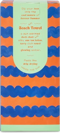 Fragrance story: A sun-warmed deck chair with silky suntan lotion, terry-cloth towel and glowing amber.
