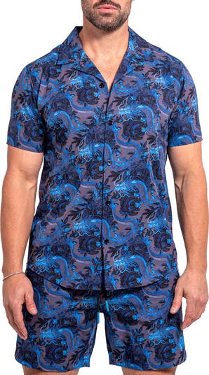 Beachdragon Blue Short Sleeve Cotton Button-Up Shirt