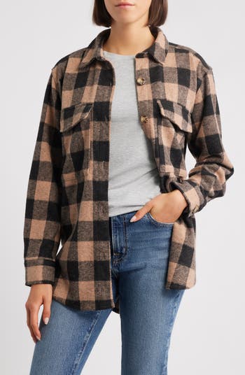 A brushed texture and a large-format plaid pattern kick up the cozy factor for a roomy button-up that works well as an outer layer or a solo player.