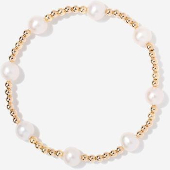 This bracelet is a timeless piece that artfully combines the classic elegance of pearls with the rich warmth of 3mm golden beads. The alternating pattern creates a rhythm of sophistication and simplicity, offering a chic update to the traditional pearl bracelet.