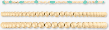 for the perfect mix of dainty chain and gold bead bracelets. this stack includes a dainty 14k gold filled chain with turquoise enamel accents, and two 14k gold filled bead bracelets in sizes 3mm and 4mm, handmade.