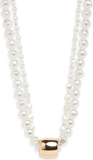 Glam up everyday looks with this layered faux-pearl collar necklace centered by a glossy bead pendant.