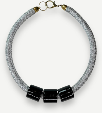 Gloss ceramic beads with natural detailing are strung on a gold cord with knotted cording and brass ends for a statement look, finished with an adjustable length for a customizable fit. The perfect statement piece.