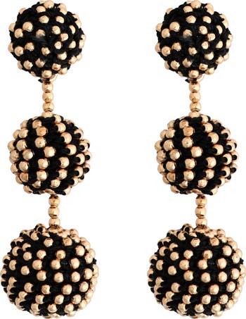 Bring texture and shine to your look with these swingy drop earrings featuring macramé-inspired spheres strung with glinting metal beads.