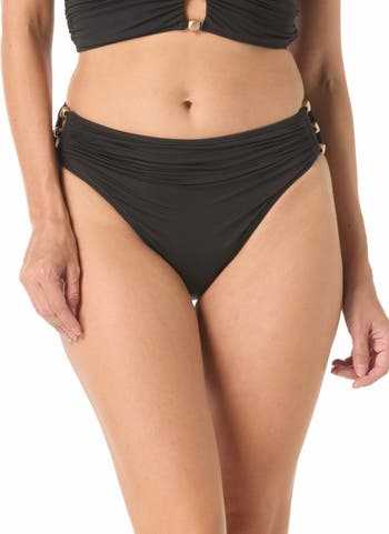 A flattering bikini bottom for a simple yet sophisticated option. Bead trim at the sides add a splash of luxury to a classic bikini style. Solid colors make it perfect to mix and match with coordinating swim tops and cover ups for complete outfits and plenty of versatility.