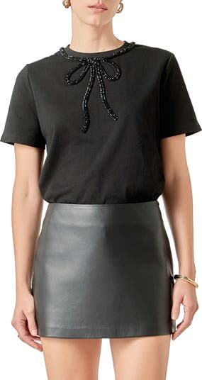 An embellished bow makes a statement from the neckline of this dreamy T-shirt crafted from pure cotton and cut in a fit that can be styled endless ways.
