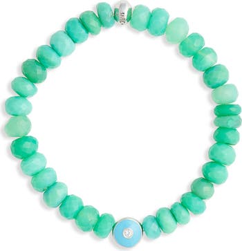 A beaded bracelet strung with colorful stones is balanced by a sterling silver charm and an enamel station with a starburst setting of white topaz.