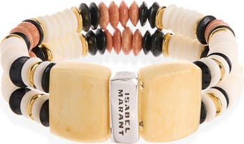 The brand's affinity for earth tones and texture coalesce in this layered bead bracelet featuring buffalo bones.