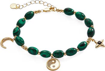 Manifest the vibes you want with this malachite charm bracelet. A stone of protection, malachite is believed to help maintain emotional equilbrium and encourage your intuition. Combined with a yin-yang for balance and a moon representing intuition and your own divine power, it's a gorgeous reminder that you've got everything you need within you.