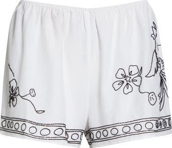 The brand's witty New York spirit meets exacting handiwork in the allover cockatoo beadwork traced across these shorts. The relaxed silhouette in airy cotton-silk poplin makes them an instant statement for bright days and balmy nights.