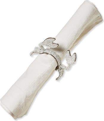 - The Beaded Crab Napkin Ring handcrafted napkin rings made from iron and glass featuring white beads, each measuring 0.25 inches in height, 3.5 inches in length, and 3.5 inches in width.