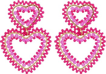 Bring a pop of color to your look with brightly beaded drop earrings in the shape of sweet hearts.