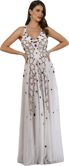 Beaded Dress with Open Cross Back and Flowy Skirt