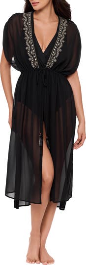 A hand-beaded embrodiered trim amplifies the breezy vibe of a resort-ready cover-up from a sheer georgette so you can show off your swimwear.