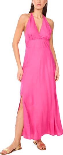 Soak up the sun in this shoulder-baring maxi dress framed by a beaded back strap and a flowy skirt boasting a thigh-high slit.
