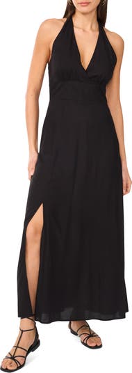 Soak up the sun in this shoulder-baring maxi dress framed by a beaded back strap and a flowy skirt boasting a thigh-high slit.