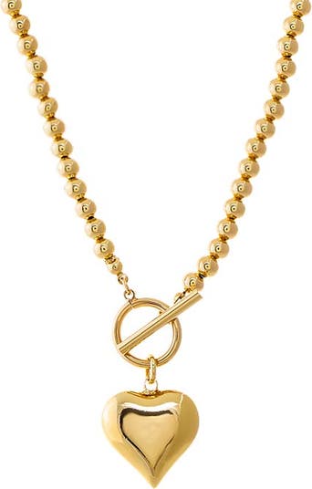 Add a glowing touch to your everyday edit with the Beaded Heart Toggle Necklace by Adina Eden, a dazzling Necklace. With sleek edges and glowing tones, this necklace for women stuns in Gold. When you want your outfit to feel complete, you can trust this piece to level up any look without making it feel overdone or excessive. Mix this gold plated necklace with selections from the Chain Necklaces collection for a full look that feels intentional. You style it your way—it effortlessly adapts to your vibe.