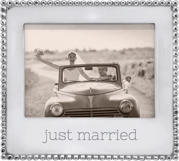 Set the tone for married life with this textural frame, where a classic beaded border frames moments worth replaying. Handcrafted from recycled aluminum, it’s a thoughtful gift for engagements, weddings and bridal showers.