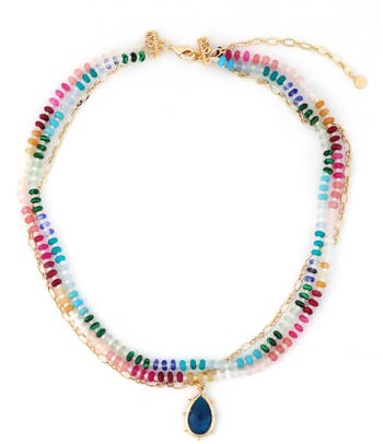 Add a pop of playful color and texture to any look with this layered necklace designed with two colorfully beaded strands paired with a gleaming chain.