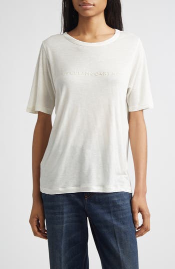 Stella McCartney Beaded Logo T-Shirt, Main, color, Cream