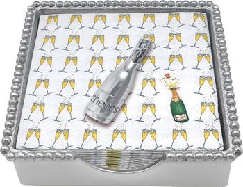 Everyone will be ready for a night of sipping bubbly with this handcrafted napkin box complete with adorably patterned napkins and a champagne-shaped weight to hold them in place.