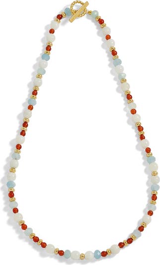 Red agate brings a fiery pop to this beaded necklace that makes any ensemble more playful.