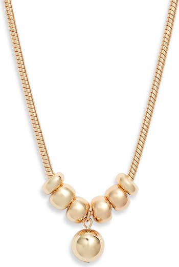 Glossy beads frame a polished orb drop on this fluid snake-chain necklace that brings eye-catching shine to your looks.