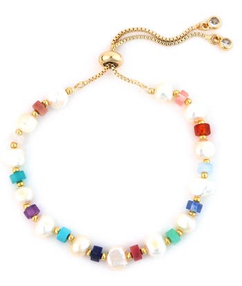 A mix of lustrous pearls and colorful stones are stranded along a playful slider bracelet that will add instant shine to your wrist's stack.