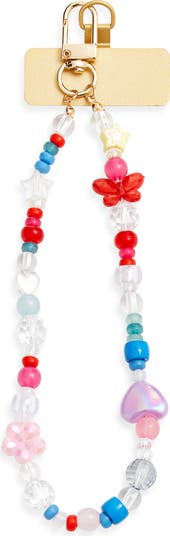 Transform your phone into a fun accessory with this whimsically beaded wrist strap that doubles as a charm for your favorite handbag.