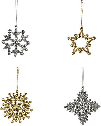 Elevate your holiday decor with our set of 4 handcrafted 4-inch jeweled ornaments, expertly crafted in India.