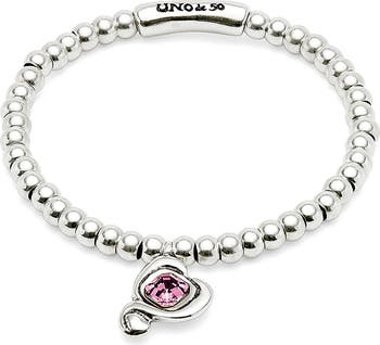 Sterling silver-plated bead bracelet with heart and pink crystal.