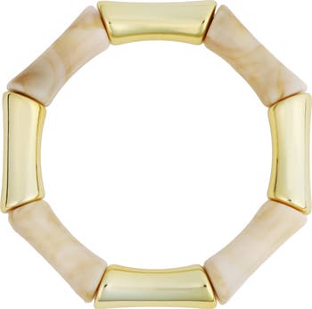 Geometric beads of resin and 14-karat-gold plating create a dynamic alternating look in this sharp,modern bracelet.