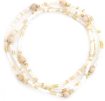 This layered stretch bracelet delivers a goes-with-anything glow thanks to dainty, neutral-colored beads.