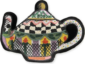 Bring brand-signature whimsy to your space with this playfully embroidered throw pillow shaped like a charming teapot.