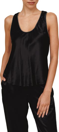 Beaded chain trim frames this smooth satin tank that's the perfect base for a luxe day-to-night look.