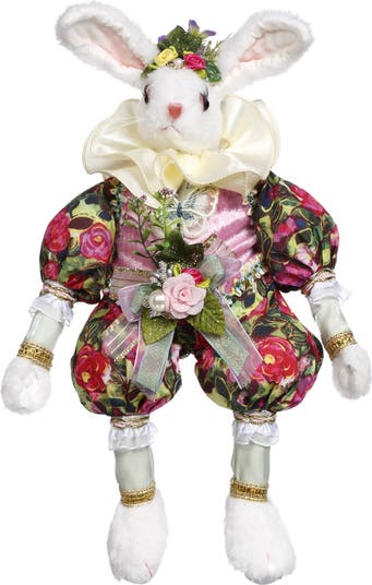 This 13.5" Mark Roberts Bean Bag Pillow Body Rabbit features a charming dressed design with a decorative vest, floral accents, and soft plush textures. The bean-bag weighted body allows it to sit or pose easily, making it ideal for shelf, chair, or tabletop display. Crafted with detailed fabrics and a whimsical expression, it adds an elegant yet playful touch to seasonal or year-round décor.