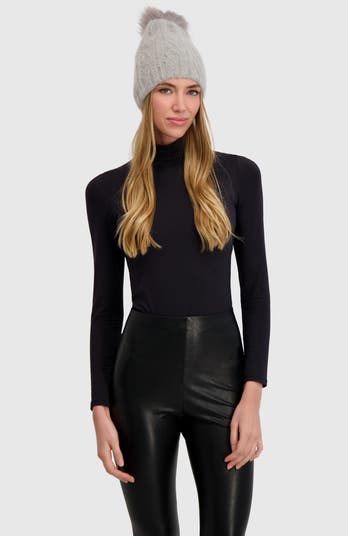This knit beanie, featuring a faux fur fox pompom, offers warmth and comfort during chilly weather.