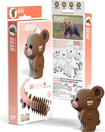 EUGY Puzzles are environmentally friendly cardboard 3D puzzles that take 10-20 minutes to assemble.