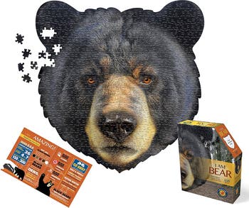 Madd Capp puzzles will challenge and inspire you, your family and friends. Each special jigsaw experience is a unique, poster sized, ANIMAL HEAD-SHAPED puzzle when fully assembled. Madd Capp Puzzles also contain colorful insert with fun facts and puzzle image reference. Our distinctive five sided box help display our product on a bookshelf in your home. The unique shaped puzzles are printed on premium quality white cardboard and the interlocking puzzle pieces are cut in a ribbon style pattern with large individual firm pieces. Fun for the entire family, these Madd Capp Puzzles are for ages 10 and up.
